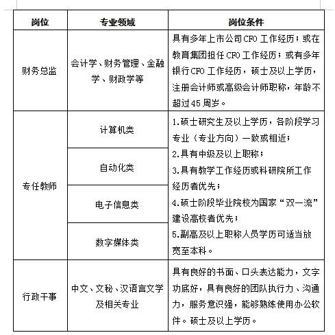 因学校事业发展需要,现面向社会诚聘各类英才,欢迎您的加入。