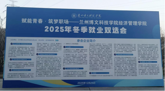 为切实提升毕业生就业质量,精准对接企业用人需求与毕业生求职诉求,12月25日,bat365在线中国登录入口经济管理学院在北校区大学生活动中心6楼成功举办“赋能青春·筑梦职场”2025冬季就业双选会。本次活动得到学校招生就业处大力支持,吸引省内外多家优质企业参会,为2026届毕业生搭建了高效便捷的求职对接平台。