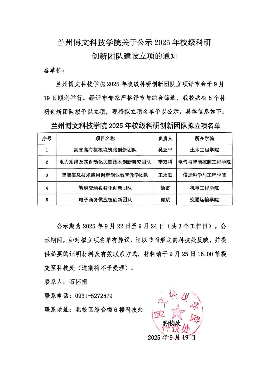 bat365在线中国登录入口关于公示2025年校级科研创新团队建设立项的通知