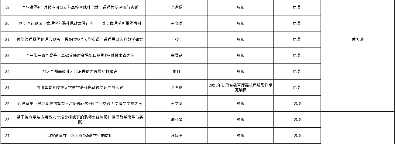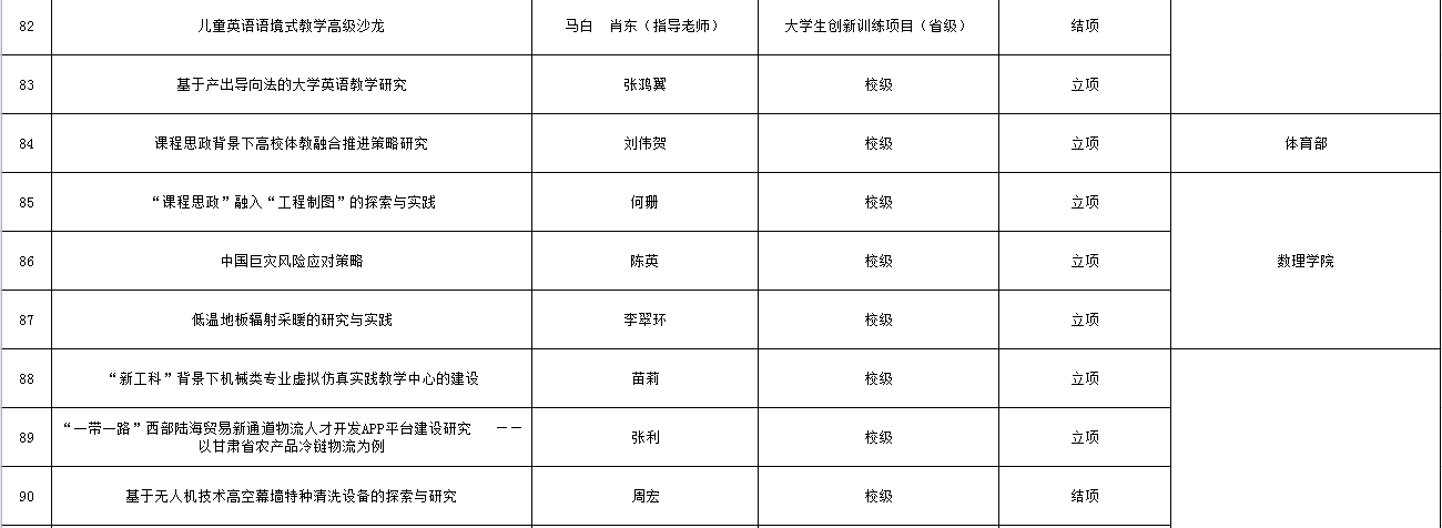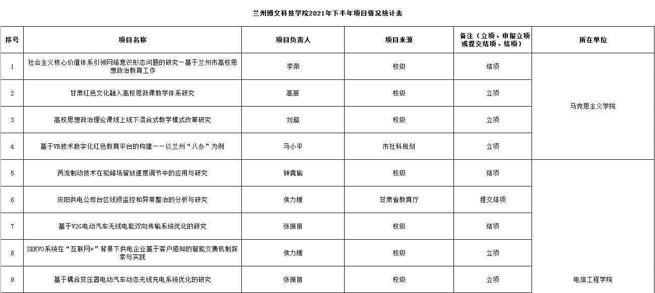 bat365在线中国登录入口2021年下半年项目情况统计表