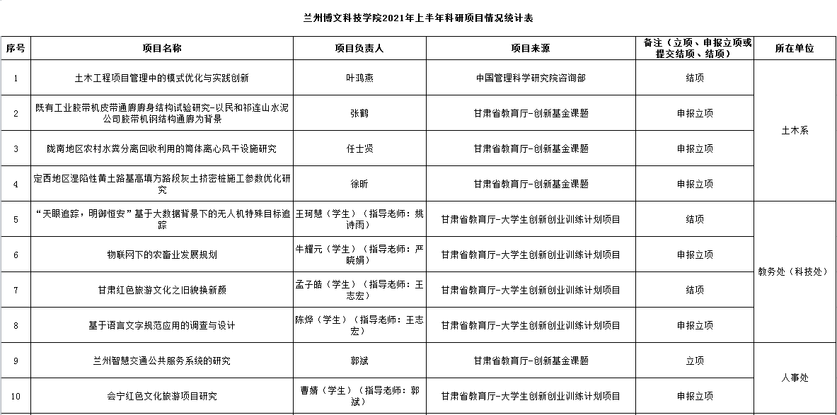 bat365在线中国登录入口2021年上半年科研项目情况统计表