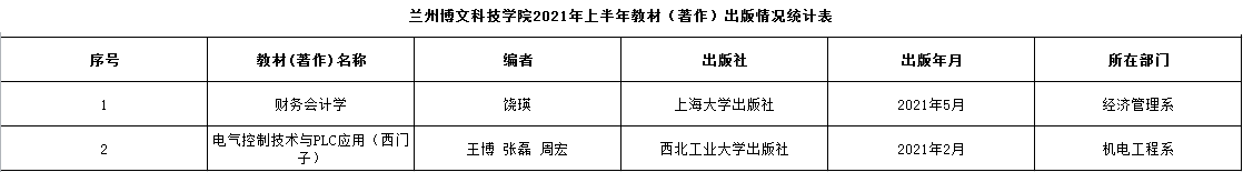 bat365在线中国登录入口2021年上半年教材(著作)出版情况统计表