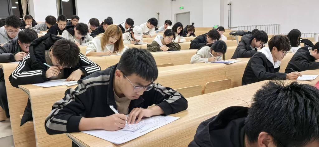 考场上,同学们沉着冷静、认真作答,时而凝神思索,时而奋笔疾书,在规定时间内全力以赴发挥最佳水平。监考教师严格履职,规范执行监考流程,维护了公平公正的竞赛环境。两校区通过线上实时联动,同步完成考务组织、纪律巡查等工作,保障了跨校区赛事的高效协同推进。