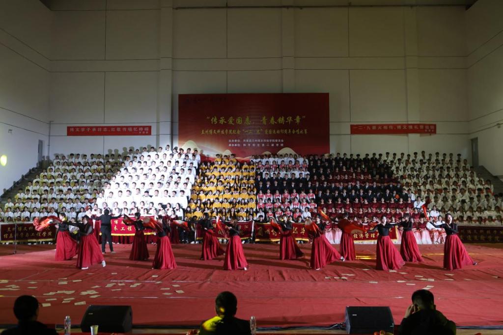 活动在庄重的氛围中拉开帷幕,现场布置紧扣“一二·九”运动主题。几位同学抬着“一二·九”运动大胶片,黑白影像中,爱国青年走上街头请愿游行的身影、振臂高呼的激昂场景缓缓流淌,光影交错间,历史的厚重感与时代的使命感交织叠加,瞬间将现场氛围拉回那段风雨如晦却热血沸腾的岁月,为整场活动奠定了深沉庄重的基调。