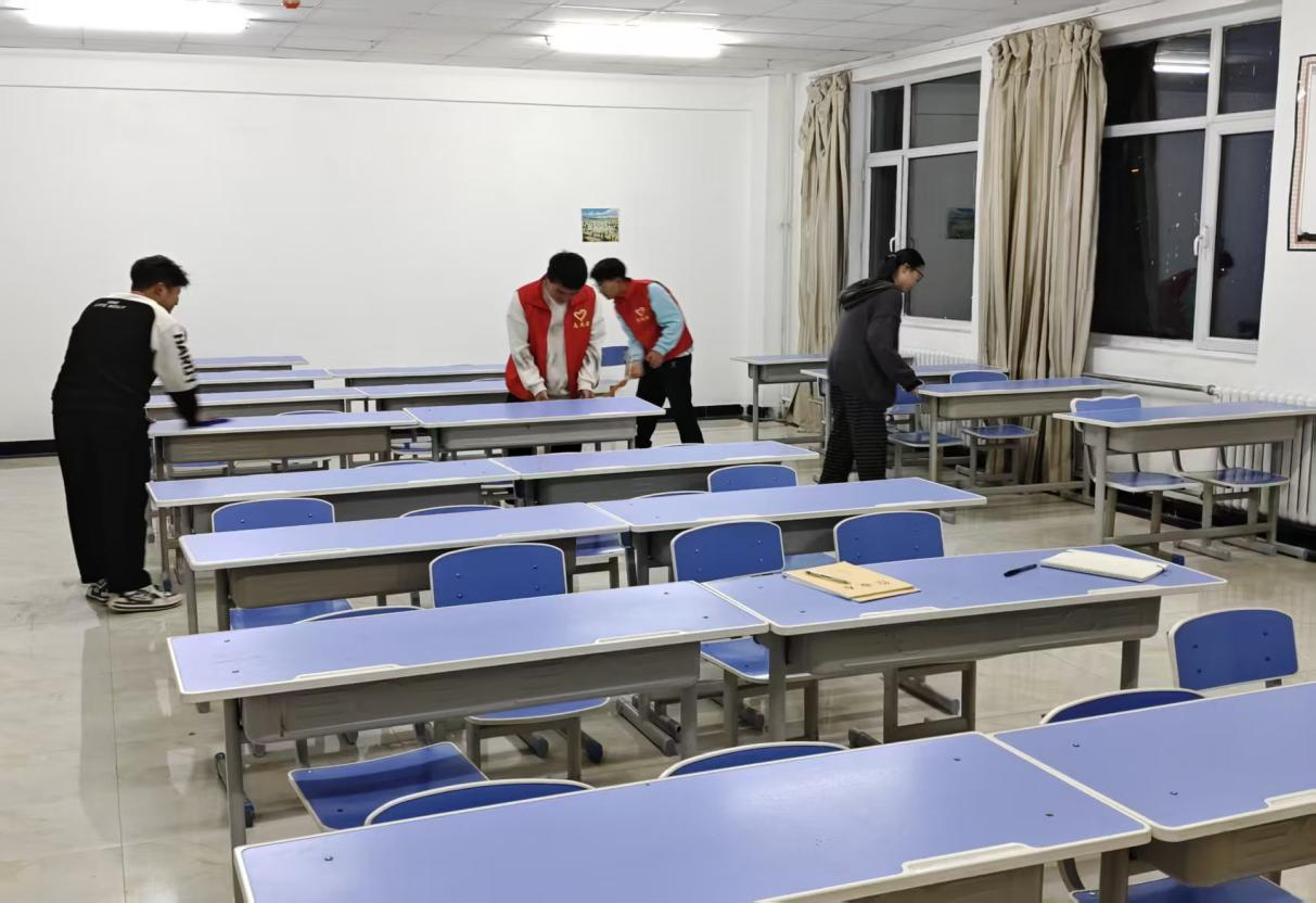 土木工程学院为保障“洁净教室·共筑文明”主题卫生清扫活动顺利进行,提前开展筹备工作。团委结合各教室使用频次、卫生难点等实际情况完成实地勘察,制定“分区负责、定岗定责”方案。同时,将志愿者划分为多个小组,明确桌面清理、地面拖洗、黑板擦拭等分工,备齐扫帚、拖把、消毒湿巾等工具,为活动高效推进筑牢基础。