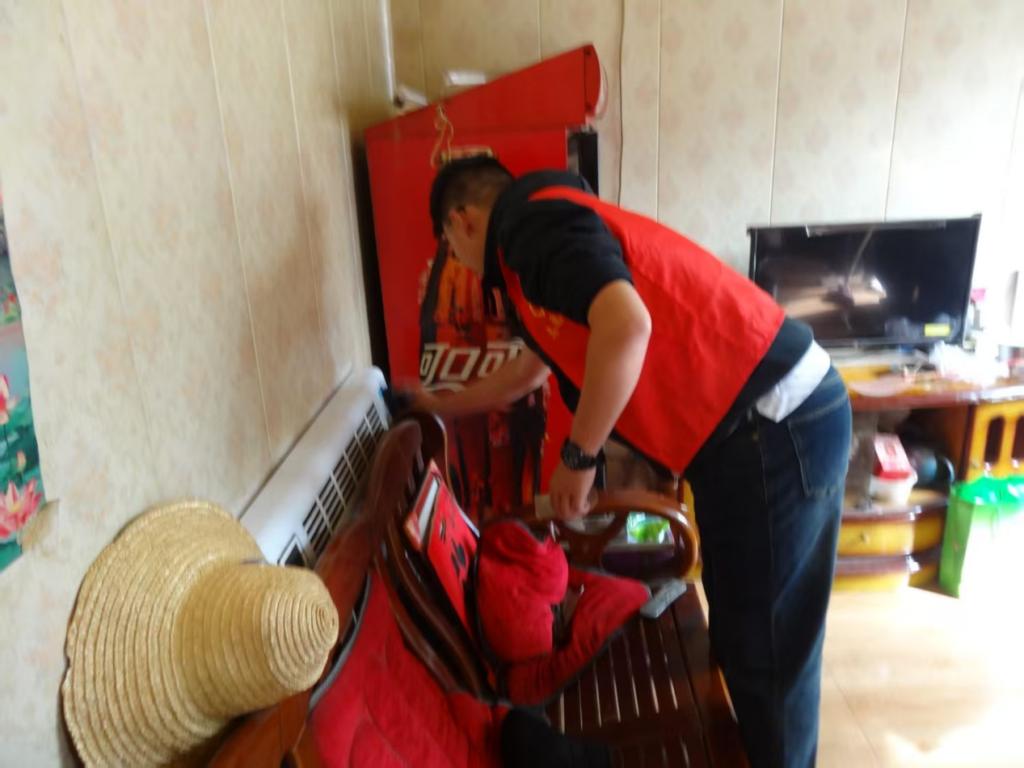 清洁过程中,志愿者们格外注重细节,体现贴心关怀。擦拭家具时,先将桌面上的水杯、果盘等物品轻轻移开,清洁完毕后再原样摆放;遇到易碎的玻璃制品,也会轻拿轻放。打扫间隙,同学们还陪居民聊家常,询问他们的饮食起居和身体健康状况,叮嘱老人注意用电安全,提醒他们天气变化及时增减衣物。