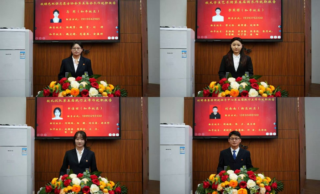第四届主席团成员代表述职完毕后,第五届主席团成员代表逐一发表就职报告。他们立足岗位实际,明确了未来工作的核心目标与实施路径,从创新活动形式、提升服务效能、强化团队协作等方面作出郑重承诺,展现出新一代学生骨干锐意进取、勇担使命的精神风貌与昂扬斗志。