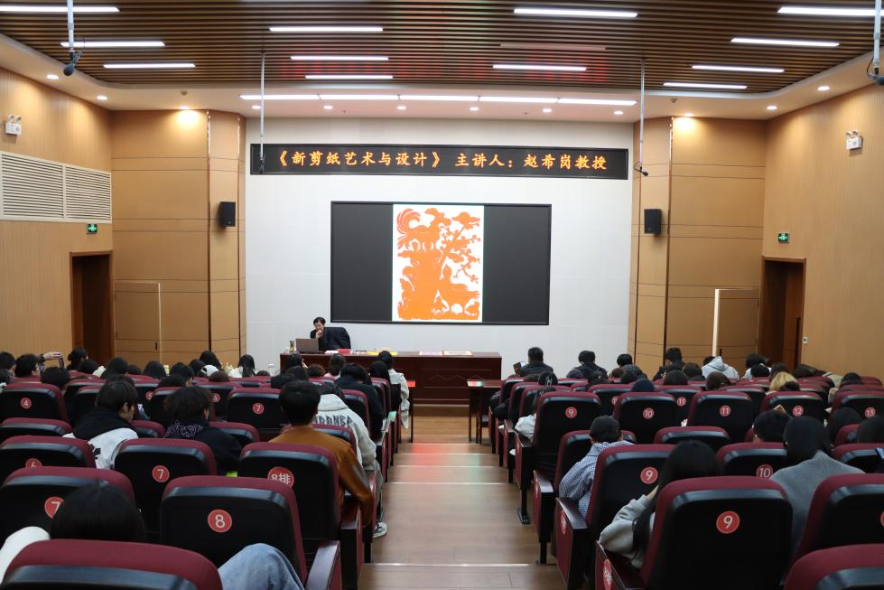 2025年11月3日,北京建筑大学现代剪纸艺术研究院院长赵希岗教授受邀莅临我院,以“新剪纸艺术与设计”为主题开展专题讲座,带来一场传统艺术与现代设计碰撞的学术盛宴。本次活动聚焦传统剪纸的现代表达与跨界创新核心议题,近百名师生齐聚现场,沉浸式参与交流,氛围热烈而浓厚。