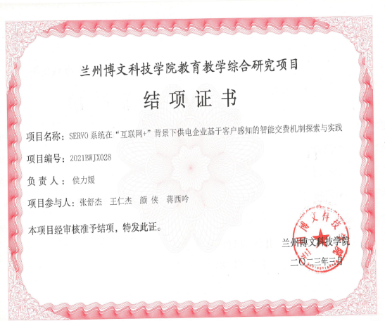 发表省级以上论文共计8篇,主持甘肃省高等学校创新能力提升项目1项,主持校级教育教学综合改革项目1项,主持校级科研项目1项。