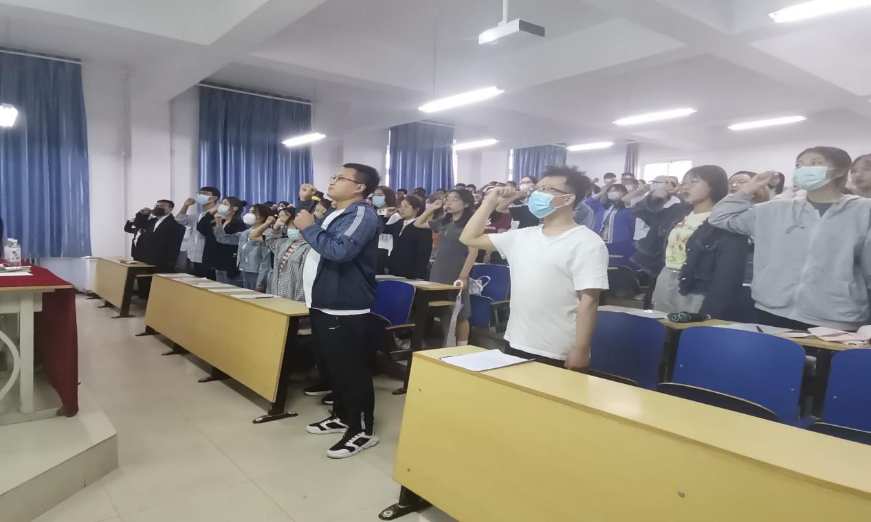 会议伊始,赵磊副书记对同学们圆满毕业表示衷心的祝贺并宣读了《致2022届毕业生党员的一封信》。对于即将走向社会的党员们,副书记提出了五点要求:一是坚定理想信念,加强道德修养;二是补足精神之钙,强化责任担当;三是践行初心使命,树立高尚品德;四是遵守党员规范,做好模范表率;五是坚持务实进取,强化工作闭环作风。其次就党组织关系转接流程以及2022届毕业生党员组织关系转接工作的要求向毕业生党员进行了讲述,强调了党员组织关系转接工作的重要性及转接过程中的注意事项,同时要求毕业生在思想上高度重视党员组织关系转接工作,行动上要按照学校的要求落到实处。会议最后,赵磊副书记带领全体毕业生党员面向党旗庄严宣誓重温入党誓词,在铮铮誓言中重拾党员初心使命。赵磊副书记寄语毕业生党员们:愿同学们在劈波斩浪中坚定初心,在披荆斩棘中练就过硬本领,在攻坚克难中站稳人民立场、投身强国伟业。用踏实的态度、炙热的情怀展现学院学子的风采。作为青年党员,要保持一股朝气、一股闯劲、一股钻劲,做新时代埋头苦干、勇毅前行者,当好干事创业的“冲锋人”,用踏实进取擦亮青春底色,争做新时代的奋斗者和追梦人!