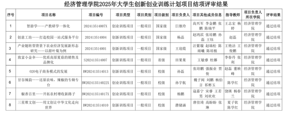 2025年,经济管理学院在大学生创新创业训练计划项目中表现卓越,共有5个项目成功立项,其中国家级项目3项,省级项目2项。同时,在结项评审中再传捷报,8个项目全部通过验收。