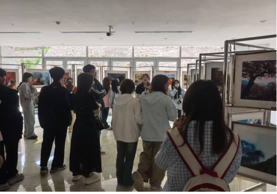 活动伊始,师生们已漫步于摄影长廊。一幅幅作品如诗如画:晨雾缭绕的云龙桥、层林尽染的栖云峰、深秋时节的太白泉……镜头下的兴隆山四季流转,瞬间点燃了师生对这片灵秀山川的向往。