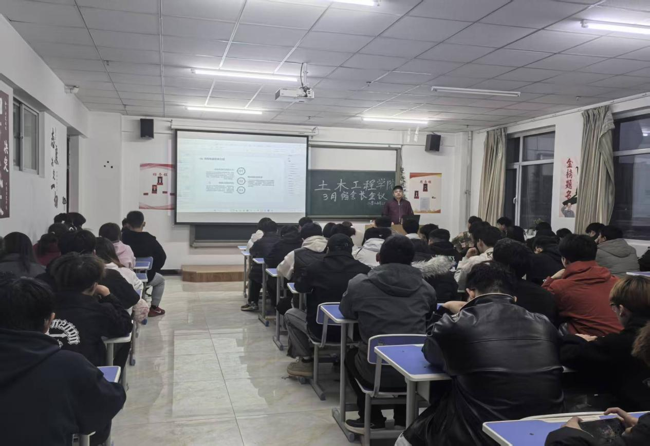 为提升学生的公寓安全意识,预防各类安全事故发生,2025年3月27日19:30,于综合楼1010教室,土木工程学院组织召开以“公寓安全无小事,共同守护你我家”为主题的宿舍长会议,此次会议由辅导员王路清老师主持,土木工程学院21、22、23和24级所有宿舍长参加。