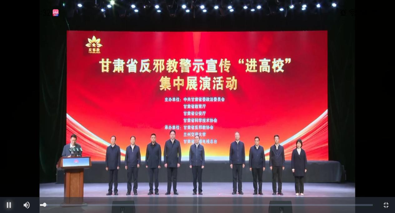 本次展演活动由中共甘肃省委政法委员会、甘肃省教育厅、甘肃省公安厅、甘肃省科学技术协会联合主办,甘肃省反邪教协会、兰州交通大学、甘肃省广播电视总台共同承办,以“青春无邪,向阳而行”为核心主题,直击高校反邪教防范痛点。直播中,展演内容紧贴校园实际与学生认知特点:通过反邪教展演展示真实案例,用触目惊心的事实敲响防范警钟;以沉浸式互动环节生动传授“不听、不信、不传、不参与”的防邪口诀;从科学视角深入剖析邪教本质,揭露其“伪善外衣下蛊惑人心、摧毁幸福” 的隐蔽伎俩;同时结合法治力量,解读反邪教相关法律法规,引导学生树立正确的世界观与价值观。