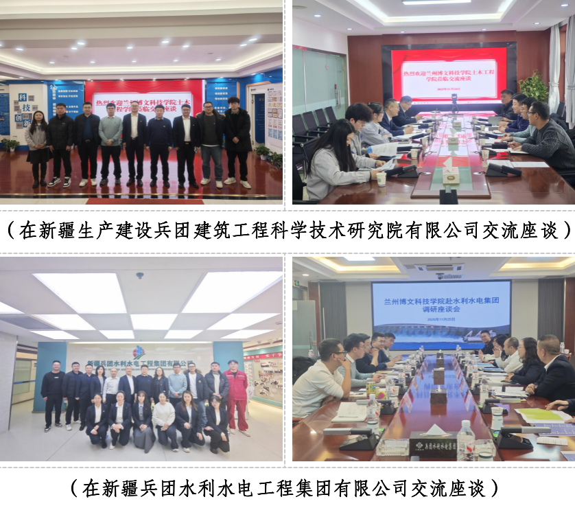 本次行动,我院先后走访新疆兵团水利水电工程集团有限公司,新疆兵团城建集团有限公司,中建三局有限公司新疆分公司等5家重点企业,覆盖铁路、水利水电、道路桥梁、建筑市政等土木类核心领域。行动围绕拓展就业市场、搭建校企合作平台、凝聚校友力量三大核心目标,系统开展企业对接、需求调研、合作洽谈等工作,圆满完成既定工作安排。